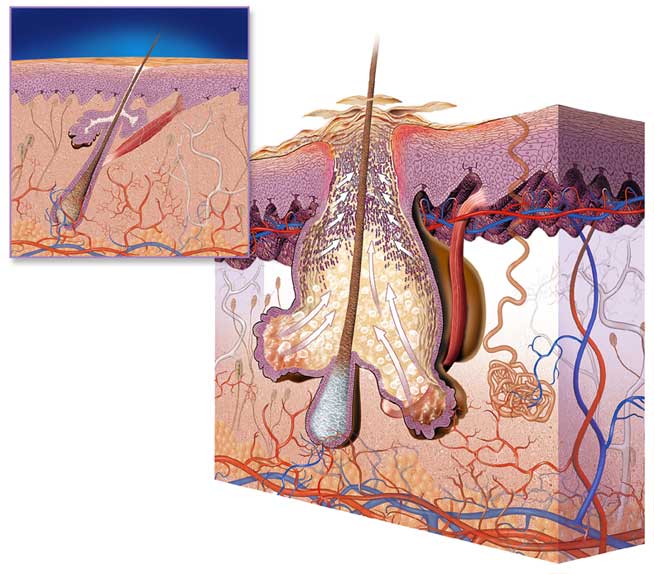 The pilo- sebaceous as shown above consists of the pore opening (osteum), the hair follicle, and sebaceous gland.