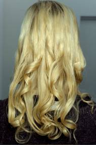 -Section the back and apply hot sets 22 to hair and then curl sections using a 1” iron.