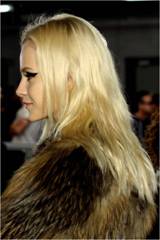 At Lanvin, the hair is very clean and natural with no product besides my favorite leave-in conditioner, Extreme Anti-Snap. You’ll see that the clothes today are very embellished, very beautiful, very luxe. I didn’t really feel like another point of view was needed. All of the parts are different – some girls have side parts and some have messy center parts. Then hair is just tucked behind their ears, it’s just very easy hair.” –Guido, Redken Creative Consultant