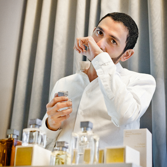 The heart of my inspiration is Paris and each fragrance of Maison Francis Kurkdjian is part of a fragrance wardrobe that I built year after year. My travels take me away, but they also serve to bring me back to my Paris, and its heterogeneous population, to its light and the shade of its monuments, the grey of its rooftops and the bursts of magic as its golden spires puncture here and there its incredible skyline.